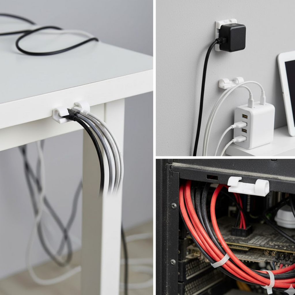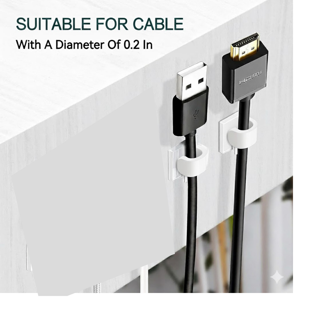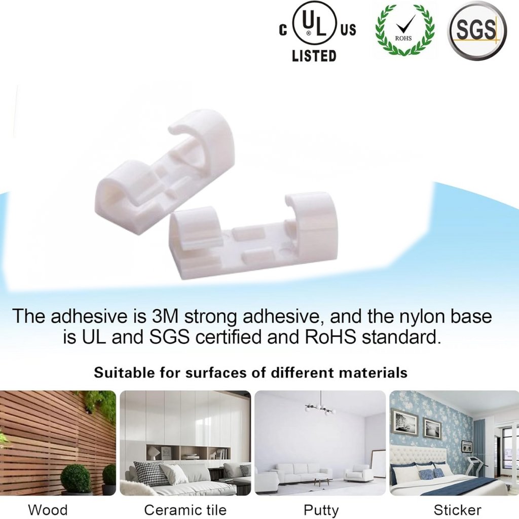 Self Adhesive Cable Clips Wire Manage Holder Sticky Mount-Round Plastic Cable Cord - Pack of 20