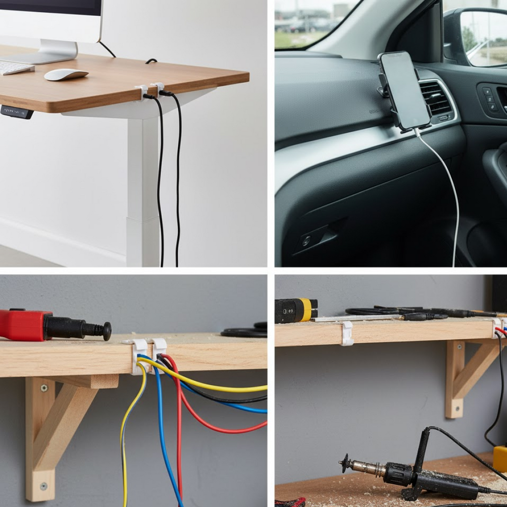 They can be used on any clean and dry surfaces, such as glass, metal, plastic, wall, and desktop. No need to punch a hole or attach any screws. Make sure the surfaces are clean smooth, oil-free, dust-free, and water-free.